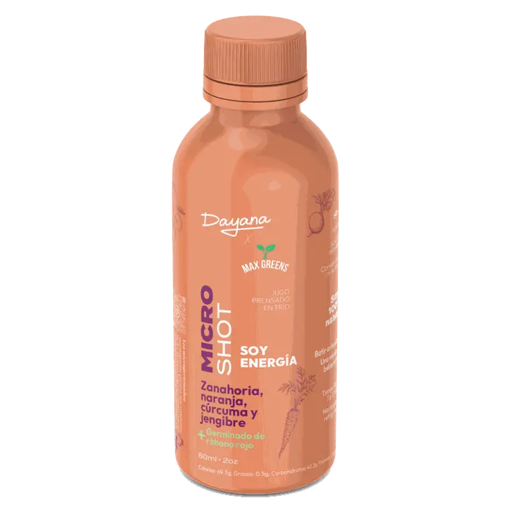 Una combinación poderosa de naranja, zanahoria, cúrcuma y jengibre, enriquecida con germinado de rábano rojo. Ideal para potenciar tu rendimiento, reducir inflamación y fortalecer tu sistema inmune de forma natural. ¡Un impulso instantáneo para tu cuerpo! 🌿🚀